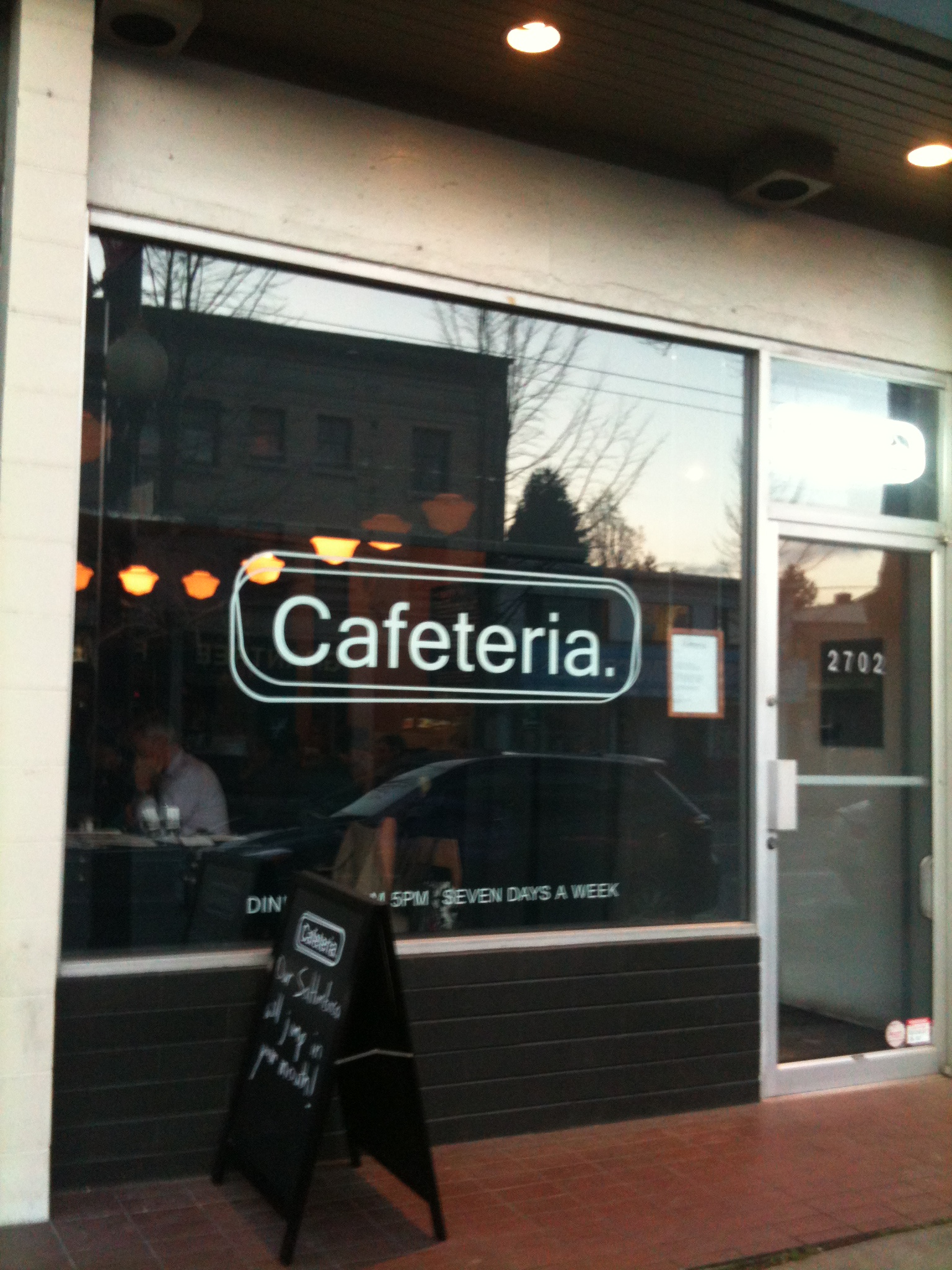 I was so looking forward to dinner with friends tonight.  They live within walking distance of so many interesting restaurants and they have never failed to choose a great one.  So when they said, hey, let’s go eat at the Cafeteria, I thought it was a joke or they had lost their minds.  Both were equally possible.