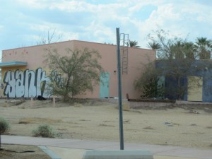 It was a huge, abandoned amusement park. Fenced off. Gated off. Intact but tagged with graffiti.