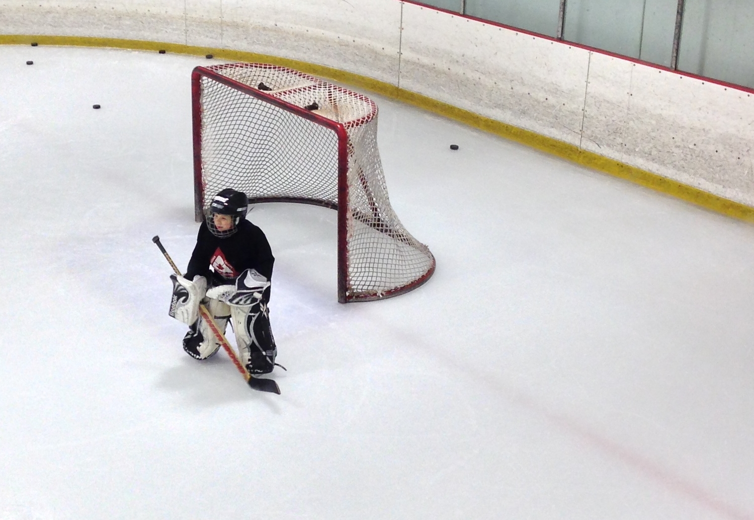 But today was a special day – hockey-wise – for the youngest. He was going to be goalie. Now, on the list of things he wants most in life, an X-box one, the power to fly and never, ever, ever, have to do homework, again, being goalie trumps this. In spades.