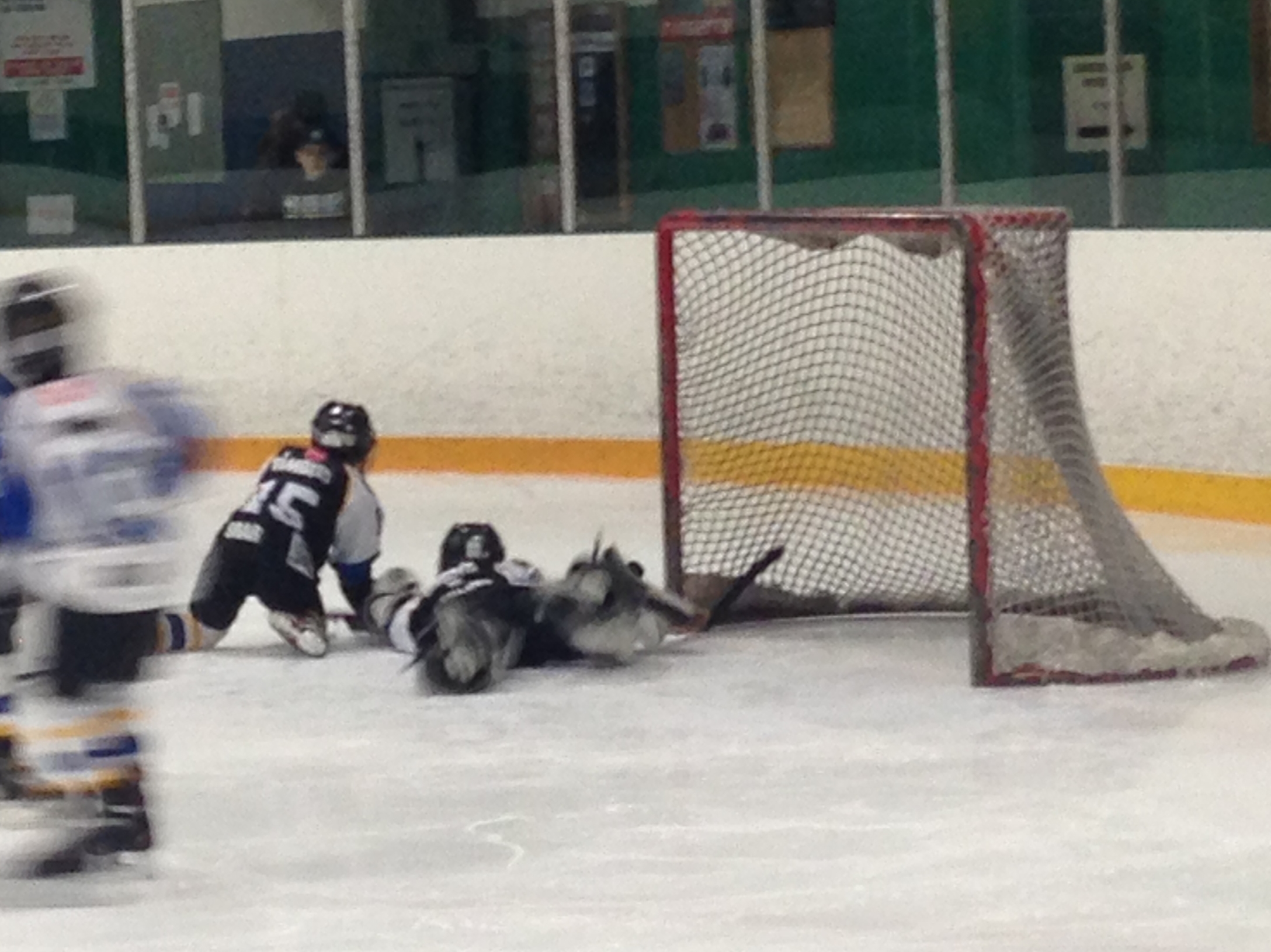 7) How often do you see the entire team has fallen down? In the NHL, not often. In minor hockey, not only could an entire team be down, but ¾ of them could be in the net.