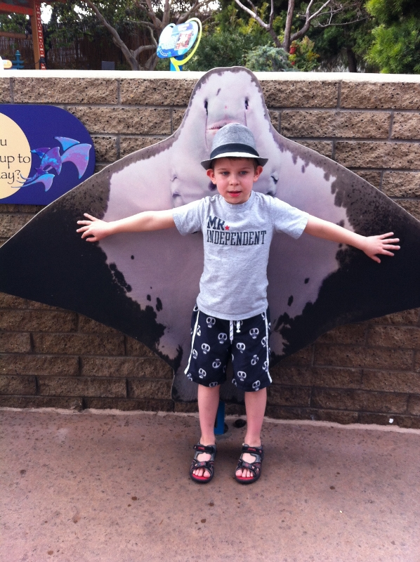 We go on to feel up manta rays in a pool. I ask, what do they feel like? “They feel soft”, says the oldest. “They feel all raspy and rough,” says the youngest. Sometimes I think if you asked them what color the sky was, one would say blue and the other would say, white.