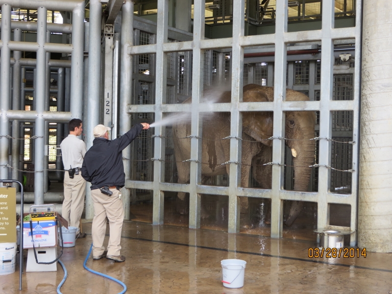 We watch an elephant getting hosed down. She seems to be loving it. She must be from Surrey. Apparently not all elephants love it, though. They keepers do their nails sometimes. Like a spa. I think the Kerrisale elephants like that. But not today. No one’s getting their nails done.