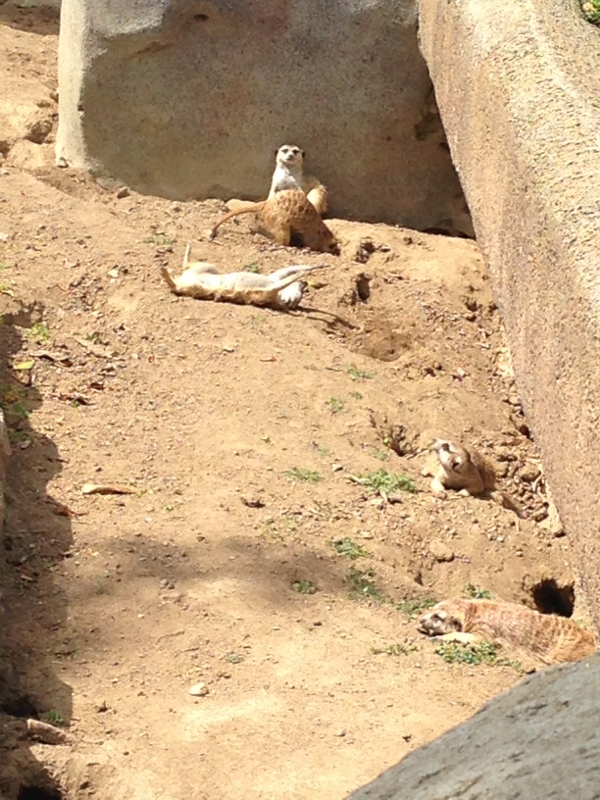 We spot meerkats hiding in tunnels they dug. They are cute. One looks like me on a sunny day, lying down with his belly up. The oldest admires how many holes they have dug. He is, afterall, a minecraft guy. Diggy-diggy holes. It’s an important skill.