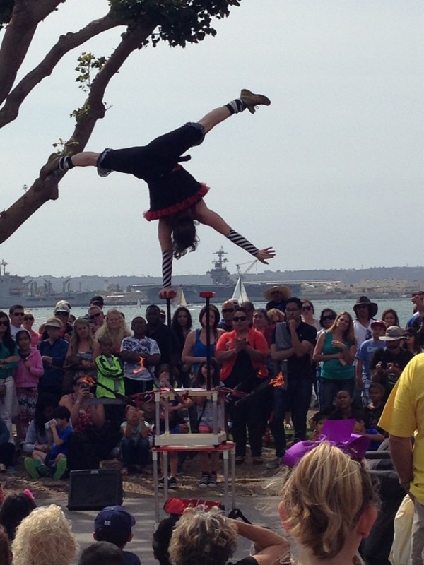 Like the dog from the movie, ‘Up’, the moment we saw a big crowd watching a girl play with fire, well, we had to stop. We just HAD to stop. And not only was she playing with fire, but was juggling flaming torches while balancing on supports balancing on a chairs!
