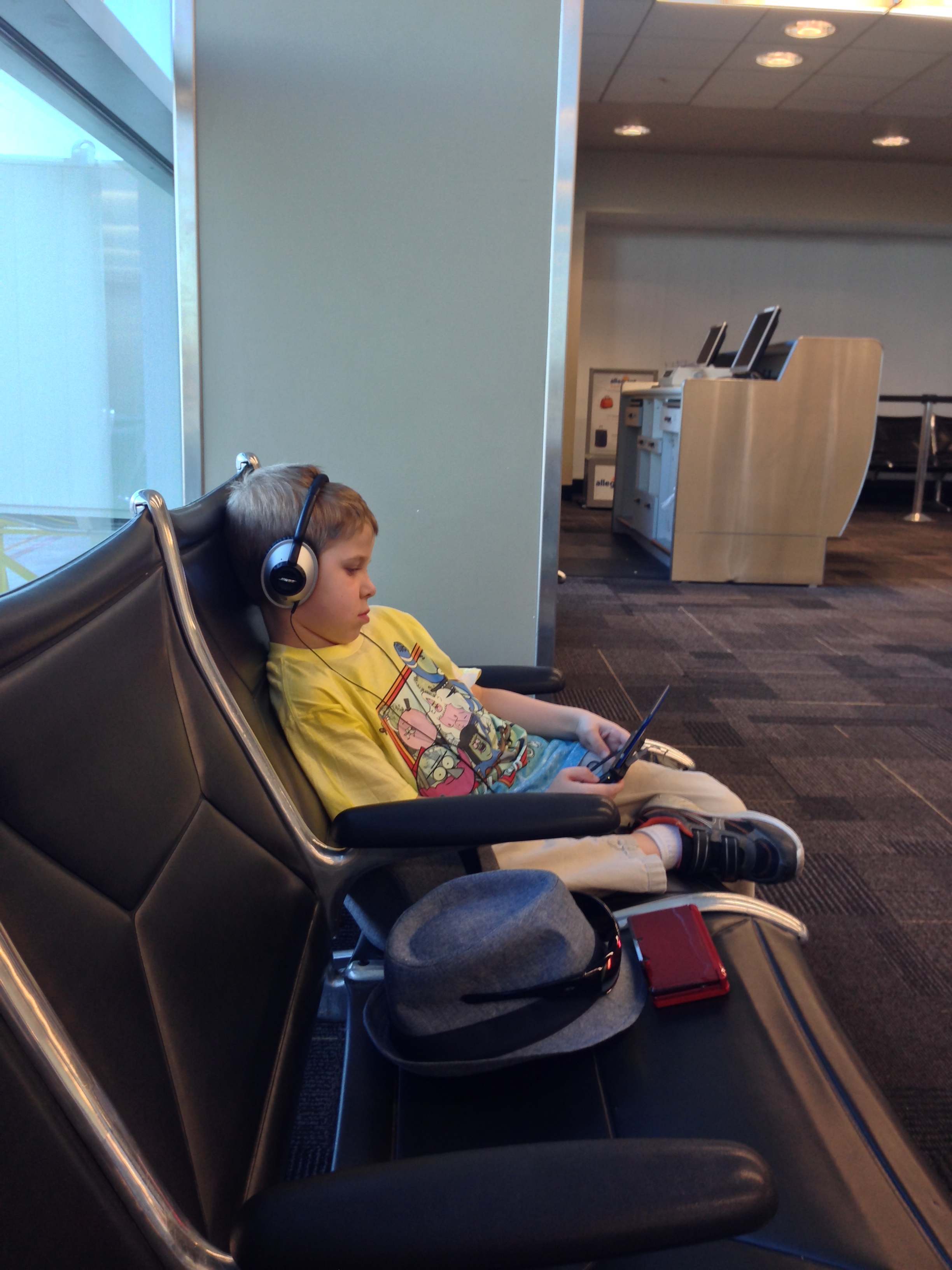 Which was good because the boys looked exhausted. But despite that, they were in good spirits (which is to say, they were not hitting each other with their backpacks or complaining about how uncomfortable the seats were or demanding unreasonable things like the airport have video games stations.)