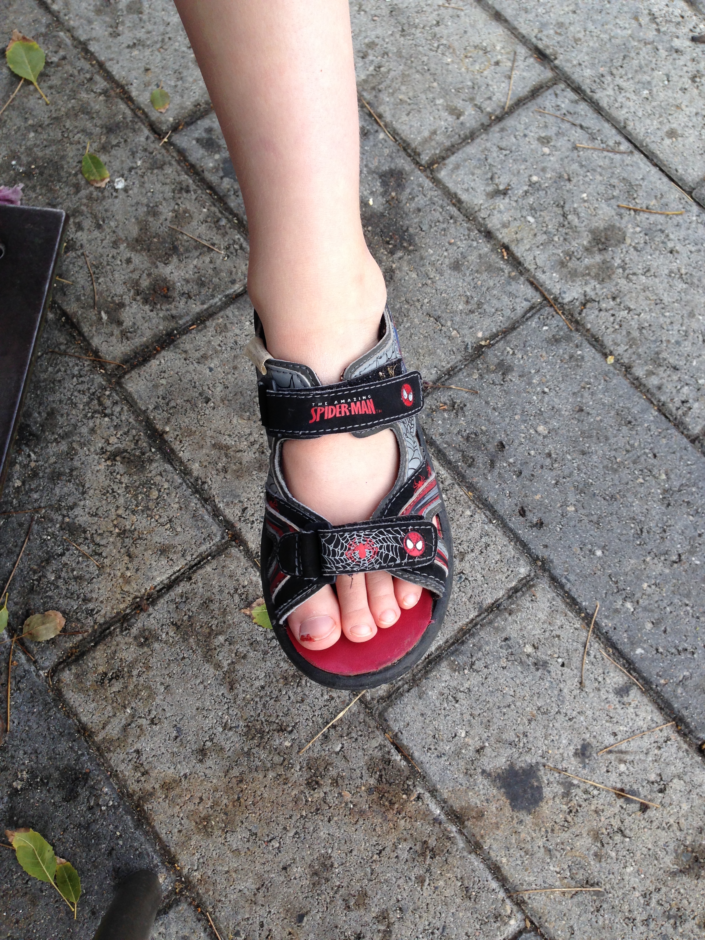 OMG! When we downloaded the big picture the kids were like OMG! Look how big his foot is LOL! It literally filled the monitor. When they say his toe they exclaimed, “Ouch, I bet that hurt!” They also said, “Cool sandals!” They got a big kick out of the Spiderman thing.