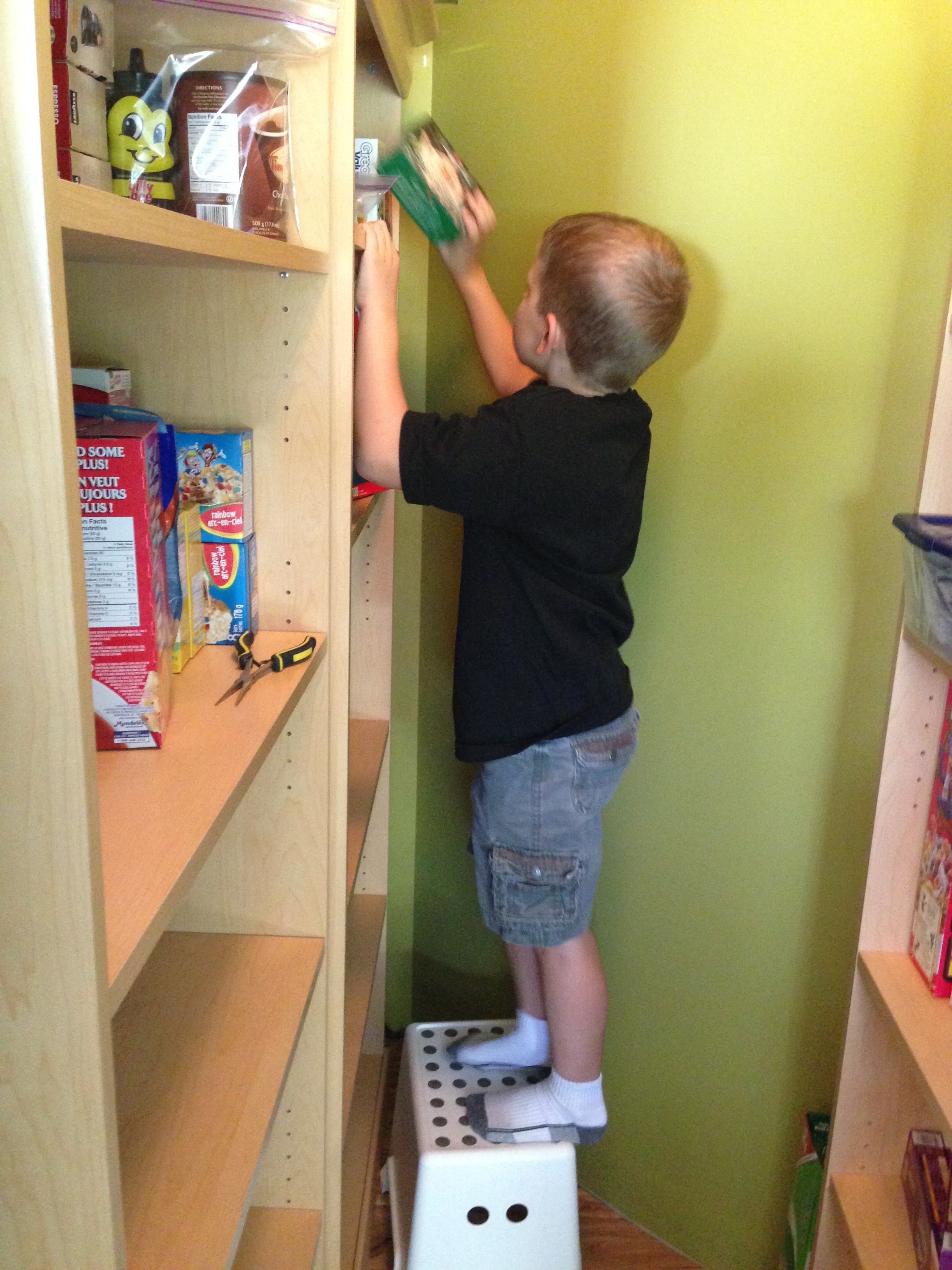 By the end, they had done a pretty darned good job. Oh sure, I would have put the labels facing out on the peanut butter and color-coordinated the cans of baked beans, but the pantry was full and organized, and they saved us adults a whole heap of time.