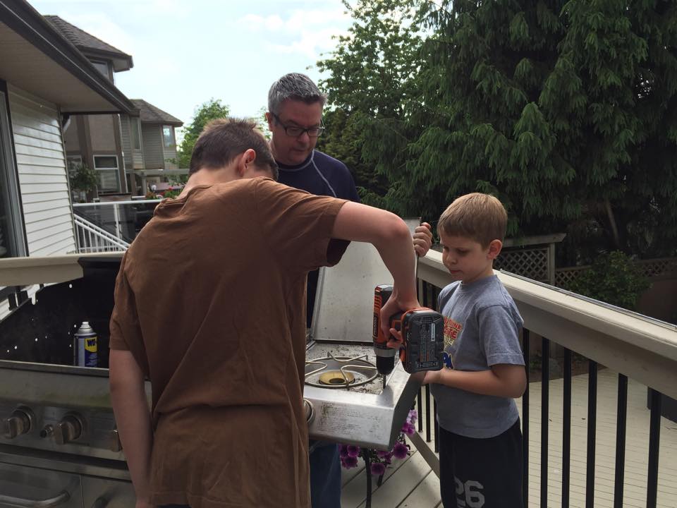 It took about 2 hours, but after the greasy dust had settled, that horrible old BBQ lay in pieces. Covered in grime, the boys looked like triumphant miners returning from a cave-in.