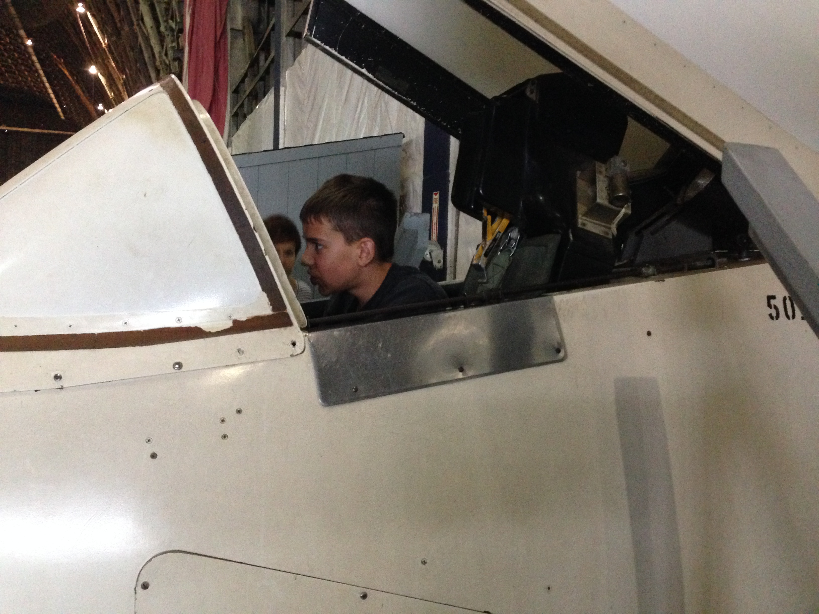 They did have a few hands-on exhibits. They tried out cockpits for a helicopter. A fighter. A trainer. And a replica of one of A7 Corsair cockpit. I think they bombed all the kids who’d ever been mean to them.