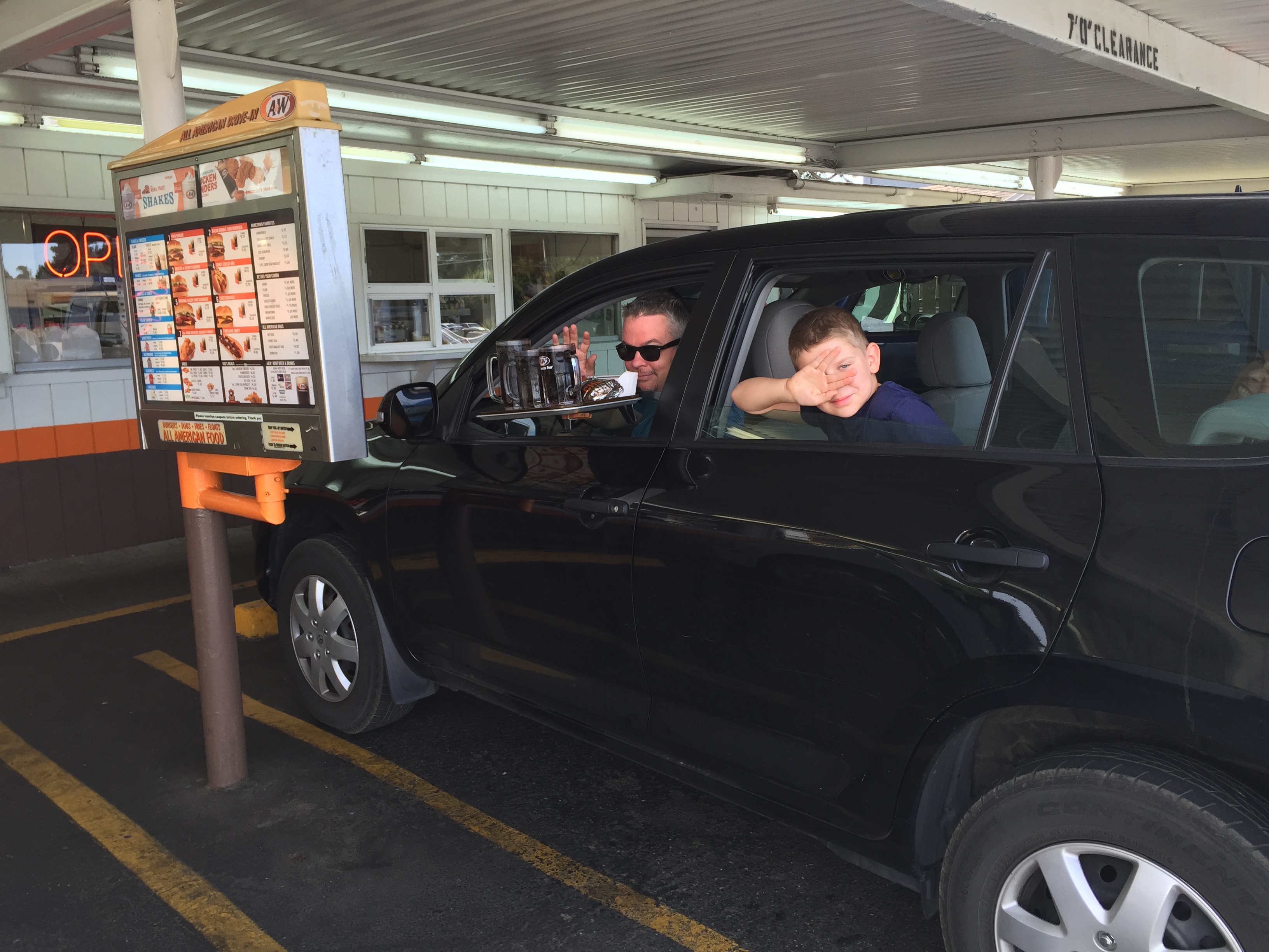 In truth, the bar is set pretty low. As long as we get back alive, I count the drive as a success. Plus, on one of the trips, we stopped and ate at an old-fashioned drive-through. A&W. How cool is that?