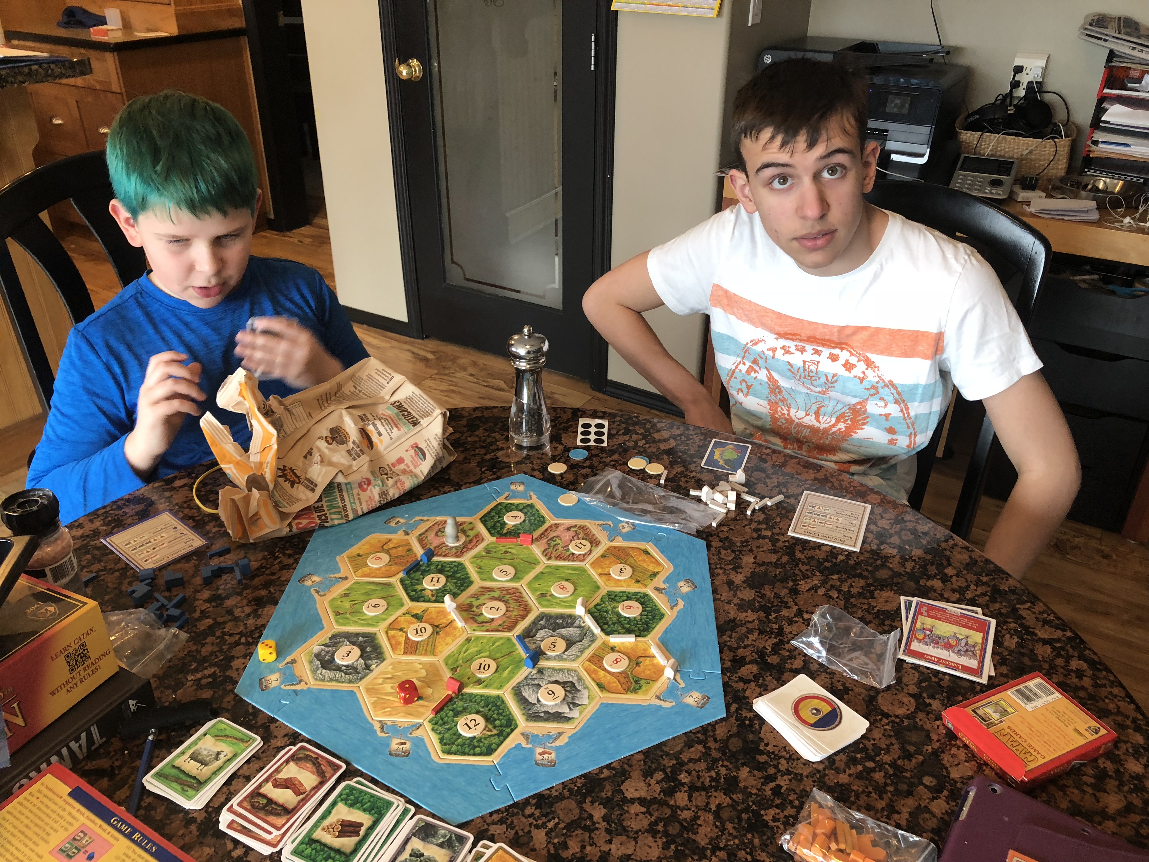 Boys playing Catan. Note The-Youngest plotting our destruction.
