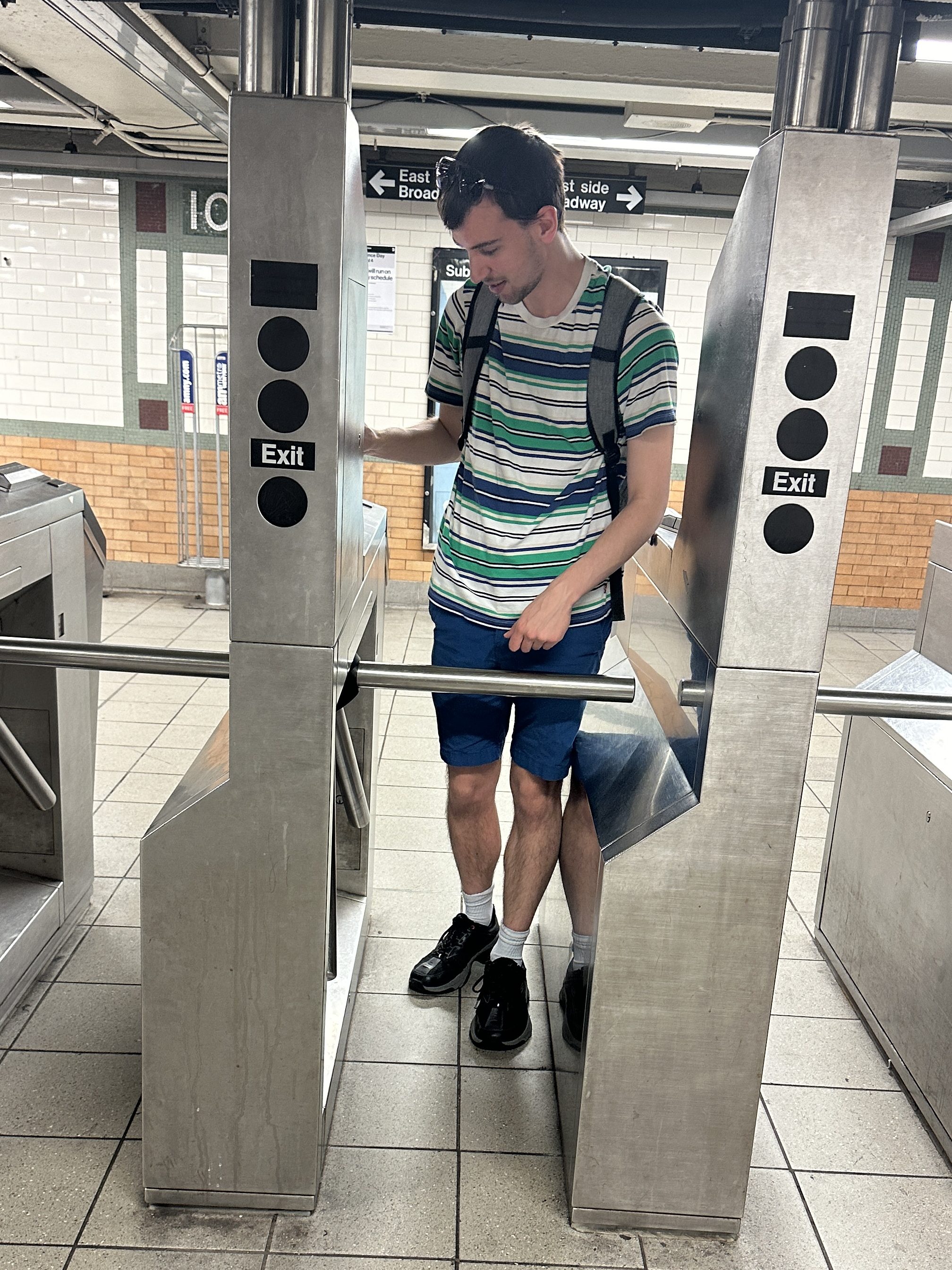 With our tickets in hand, we braved the turnstile. Nearly all of us made it through with any problems, but it took The-Oldest a few tries to get his card to scan properly.