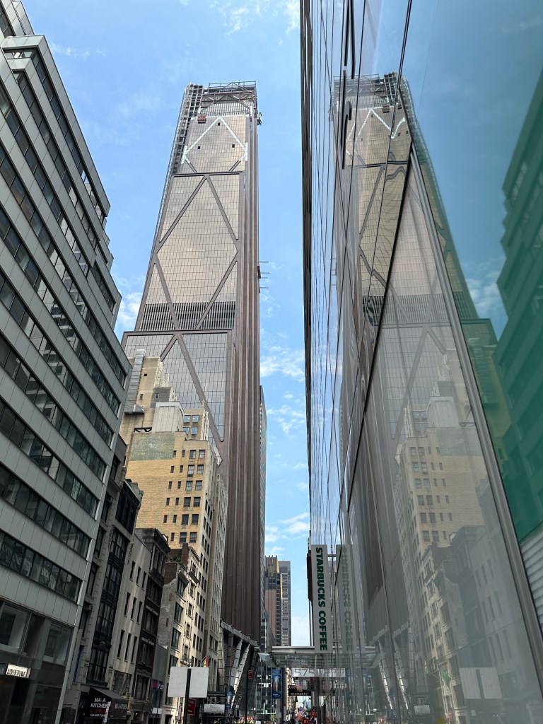The-Youngest had a rough idea of going to see the building in Suits, so that’s where we headed. Along the way, we saw Broadway, an old synagogue (the Manhattan Central Synagogue), and a few super tall buildings (oh, who are we kidding, there were super tall buildings everywhere!) and I went crazy taking pictures of modern architecture, old architecture, skyscrapers, windows full of jewelry, old-fashioned mail-drops and one building that had windows that looked like the stern of a ship (the navigation guild building).