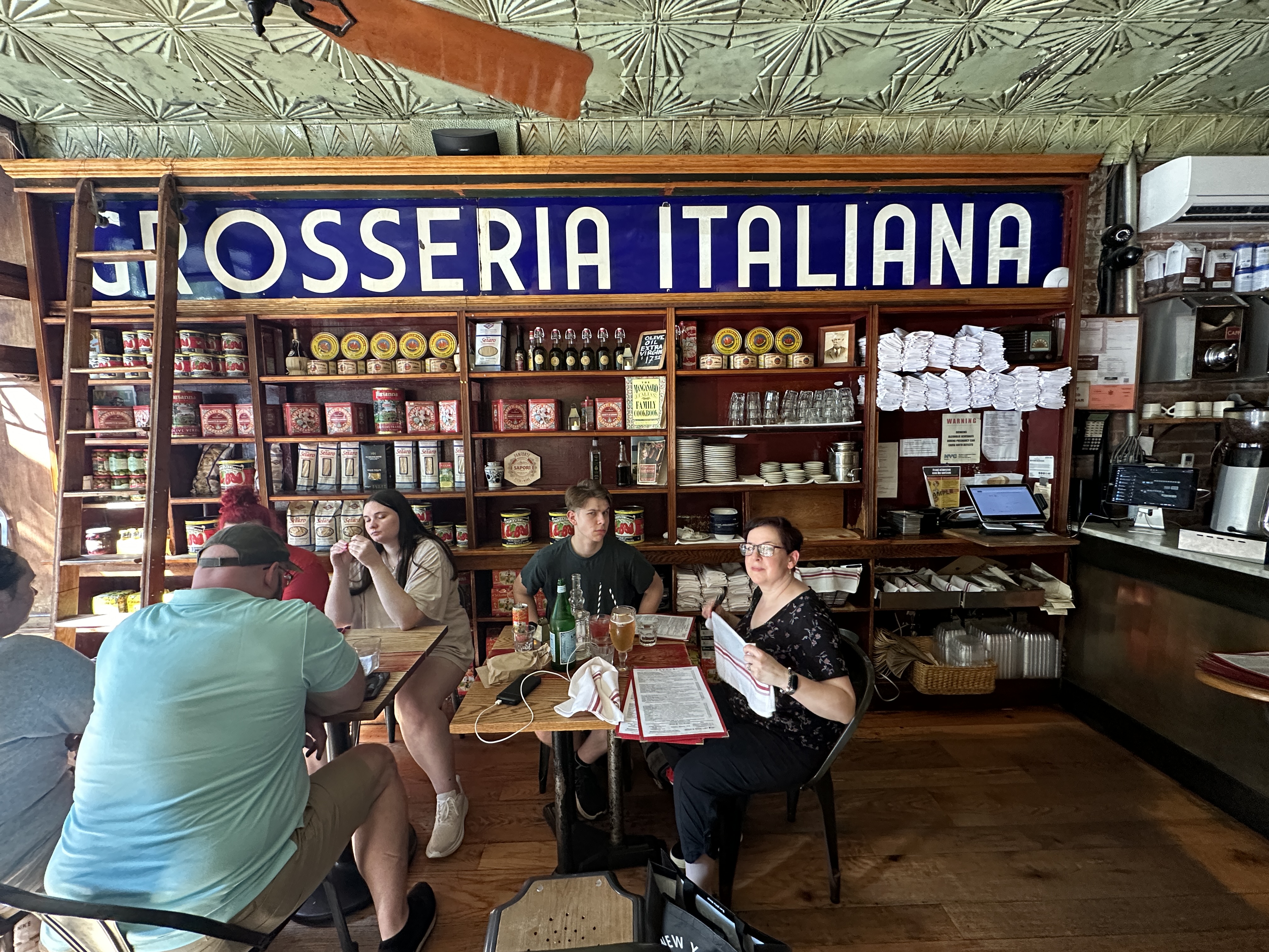 No matter. Tavola was a perfect place with seats beside a shelf of Grosseria Italiana (which, if my Italian is right, means big, fat Italian things), super cool fans overhead that all ran off one cord, and a waiter who wore a long, white apron.
