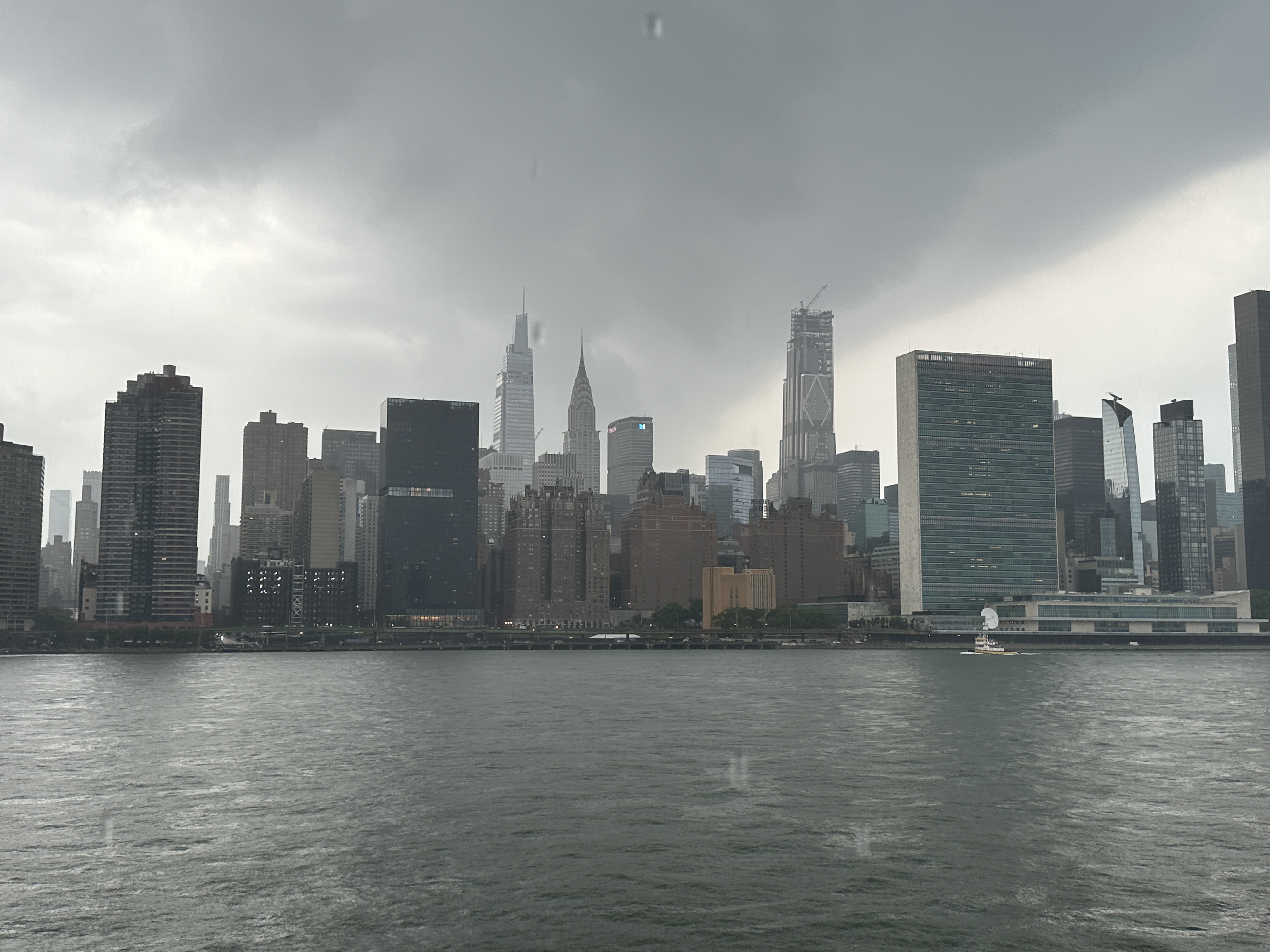 By the time we reached the north end of Manhattan, the Bronx was in the distance. The Freedom tower was to our port side. The clouds had gotten all black and angry. And then the storm hit. Thunder boomed in the distance. Lightning flashed. Rain poured down like we were in the tropics – It was a heavy, mean rain driven by heavy, mean winds.